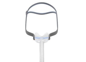 Извитата подложка на AirFit N30 е компактна и изключително мека. Тя се укрепва под носа ви, предпазвайки от болка в ноздрите, дискомфорт и зачервяване на носа. Специално създаденият тесен профил на подложката на N30 гарантира плътно прилепване – идеално за хора, които предпочитат да спят настрани.